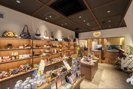 カフェの入り口には和を基調としたポーチや髪飾り、バッグ、眼鏡ケースなどの和雑貨もありましたし、キーホルダーやお菓子まで、かわいいお土産がたくさん並んでいました。