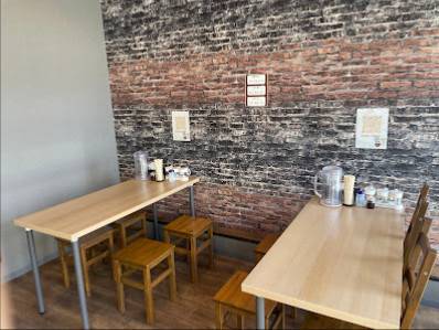 Restaurangen har en enkel men effektiv layout, med fokus på att skapa en bekväm och social atmosfär. Det finns plats för kunder att sitta vid disken och äta ramen, vilket ger en mer intim och personlig upplevelse. Det är också en icke-rökande miljö.