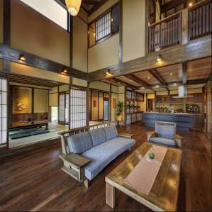 広い玄関口や吹き抜けの二階、和風デザインのインテリアなど、落ち着いた雰囲気が特徴です。木の風合いが感じられるため、居心地が良く親切な対応が魅力です。